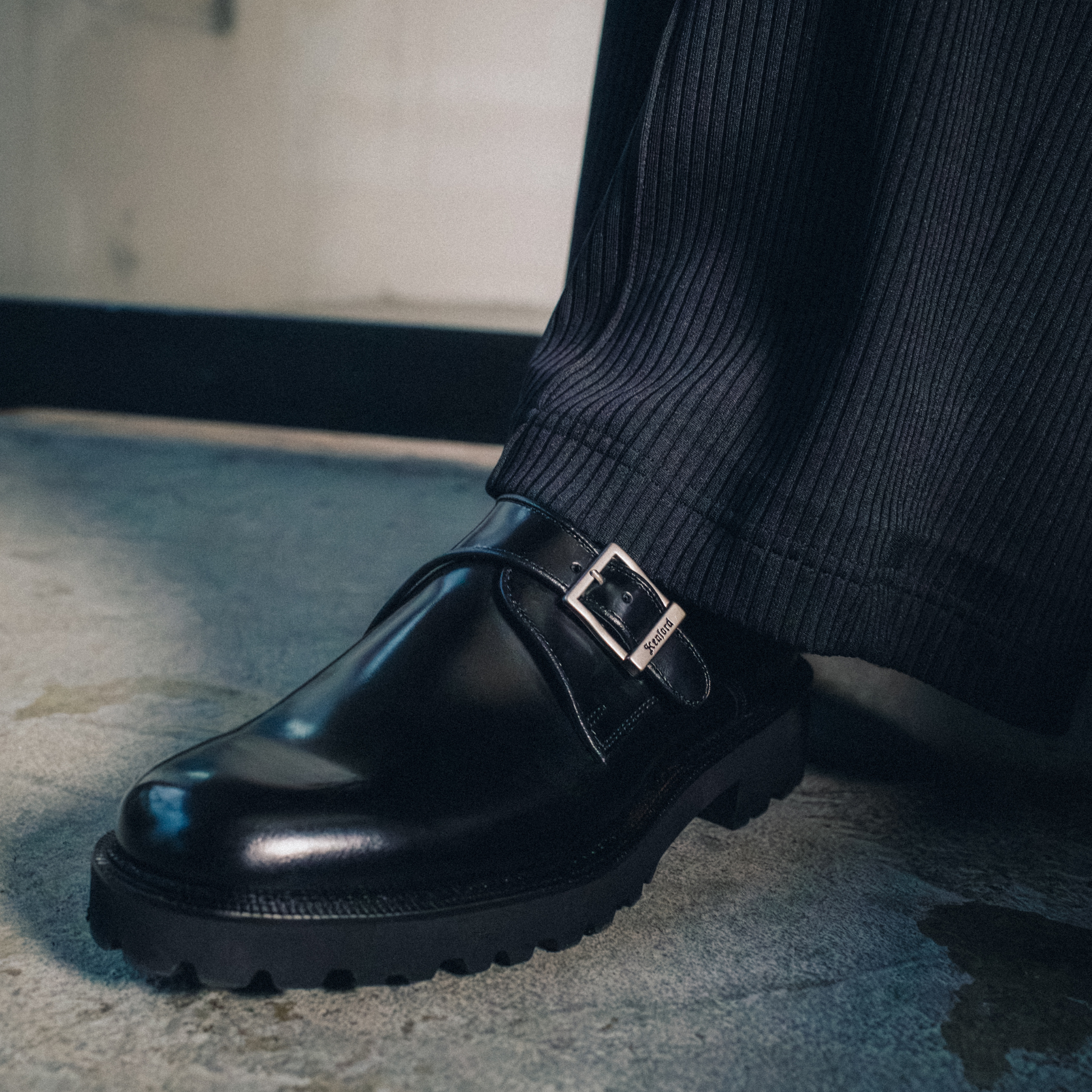 00年代のアーカイブから着想を得ながら、The Kenford Fineshoes の世界観に落とし込んだ"New Classic Shoes"。当時の木型をベースにしつつ、ややトウのバランスを短めに修正。周りを縁取るように配置された重厚感のあるパーツによりブーツライクなシルエットを備えています。アウトソールには定番のEVAタンクソールを採用し、見た目ほどの重さを一切感じさせず、快適な履き心地を体感することが出来る仕様です。ストラップに使用したバックルは、2000年当時使用していたロゴ刻印入りのオリジナル版を復刻。シンプルながら、「革靴の新しい価値観を発信する」ケンフォードらしいオリジナルな1足が完成しました。