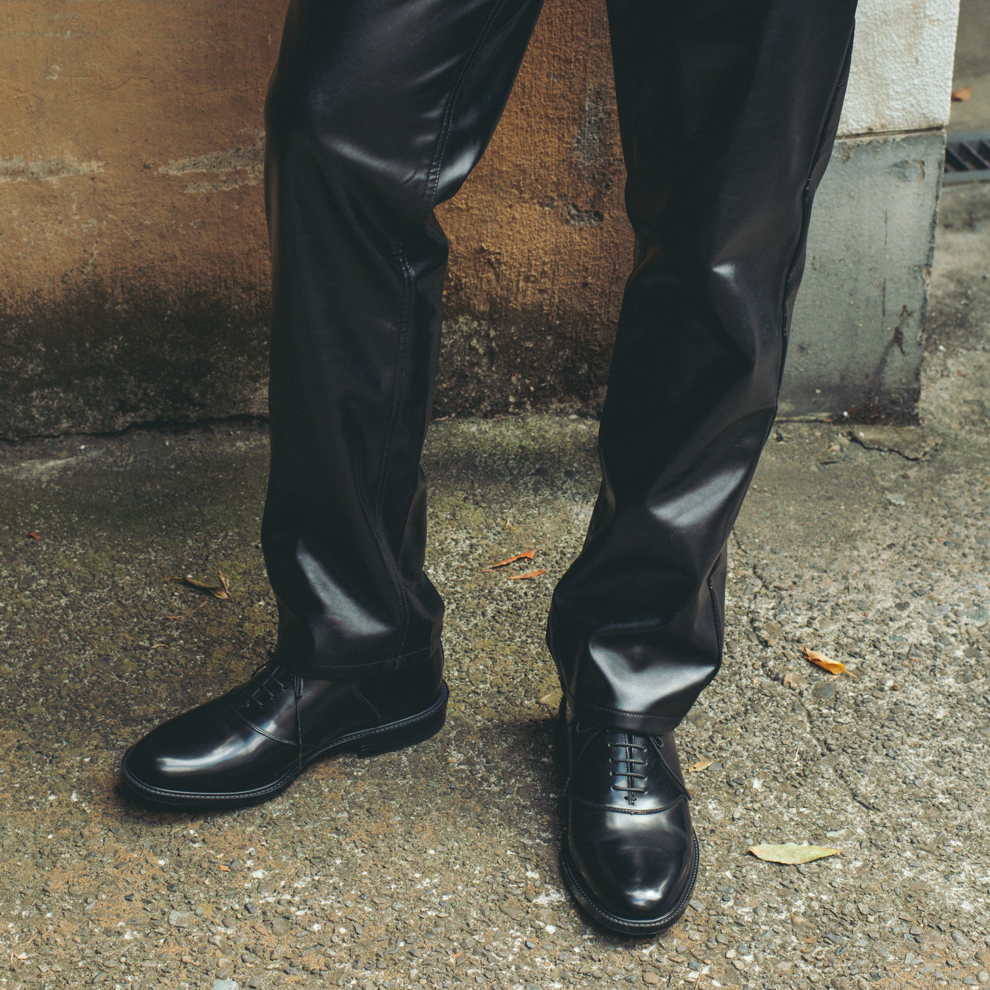 ブランドが誕生した1986年の1stコレクションにラインアップされていたアーカイブを活用し、ローファー同様に既存の日本製革靴にはない要素を加え発信をするヒモ靴の第一弾。踵下と土踏まずをサポートするクッションインソールを採用し、履き始めからストレスを感じにくい、日常使いに最適なスペックを備えています。サドルシューズは、靴の中央部分に「馬の鞍(サドル)」のような形をした別の革が縫い付けられているデザインのことを言います。ゴルフ、ボーリング、テニスなどのスポーツで広く履かれた歴史のあるカジュアルなレザーシューズに、< The Kenford Fineshoes >らしい要素を加え発信します。