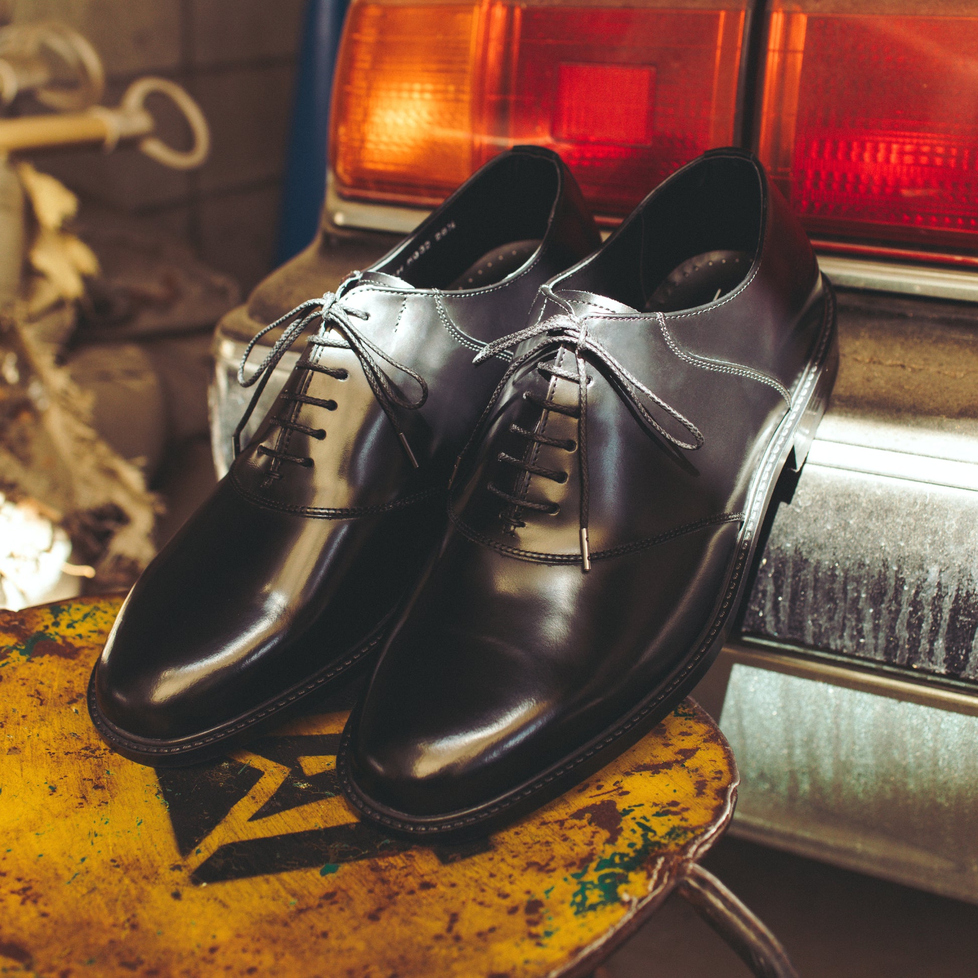 ブランドが誕生した1986年の1stコレクションにラインアップされていたアーカイブを活用し、ローファー同様に既存の日本製革靴にはない要素を加え発信をするヒモ靴の第一弾。踵下と土踏まずをサポートするクッションインソールを採用し、履き始めからストレスを感じにくい、日常使いに最適なスペックを備えています。サドルシューズは、靴の中央部分に「馬の鞍(サドル)」のような形をした別の革が縫い付けられているデザインのことを言います。ゴルフ、ボーリング、テニスなどのスポーツで広く履かれた歴史のあるカジュアルなレザーシューズに、< The Kenford Fineshoes >らしい要素を加え発信します。