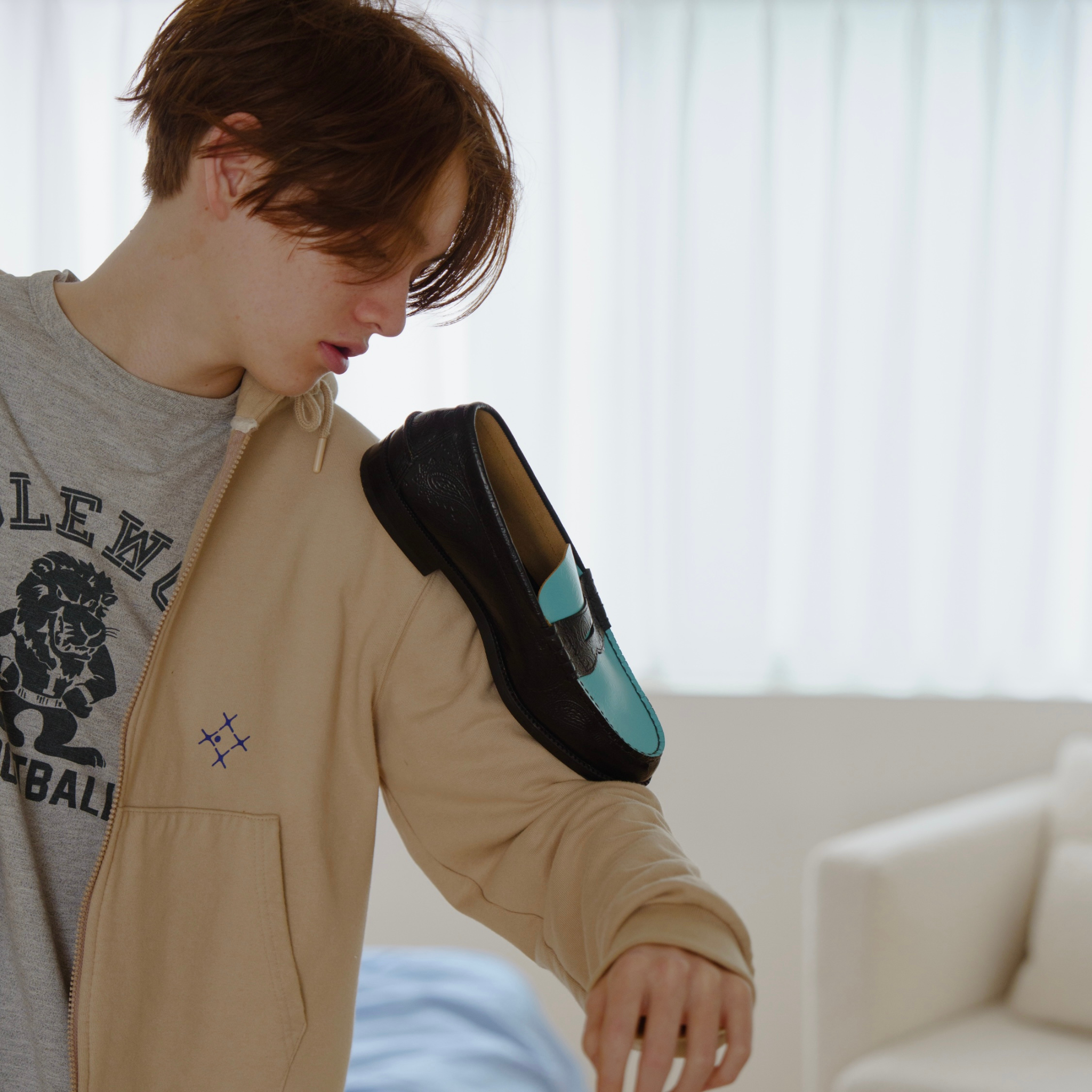 クラシックなシルエットに、未来的なカラーを乗せることで生まれる「新しさ」が魅力です。歩くたびに光の当たり方で表情が変わる型押しレザーは、履くだけでスタイルに力強いアクセントを加えてくれます。