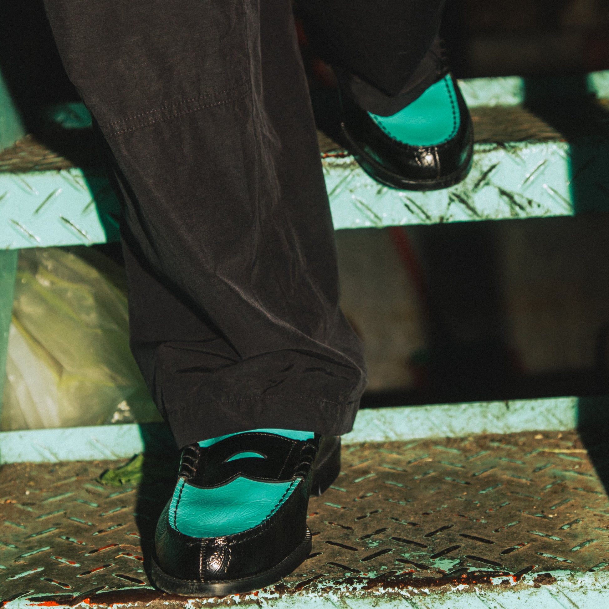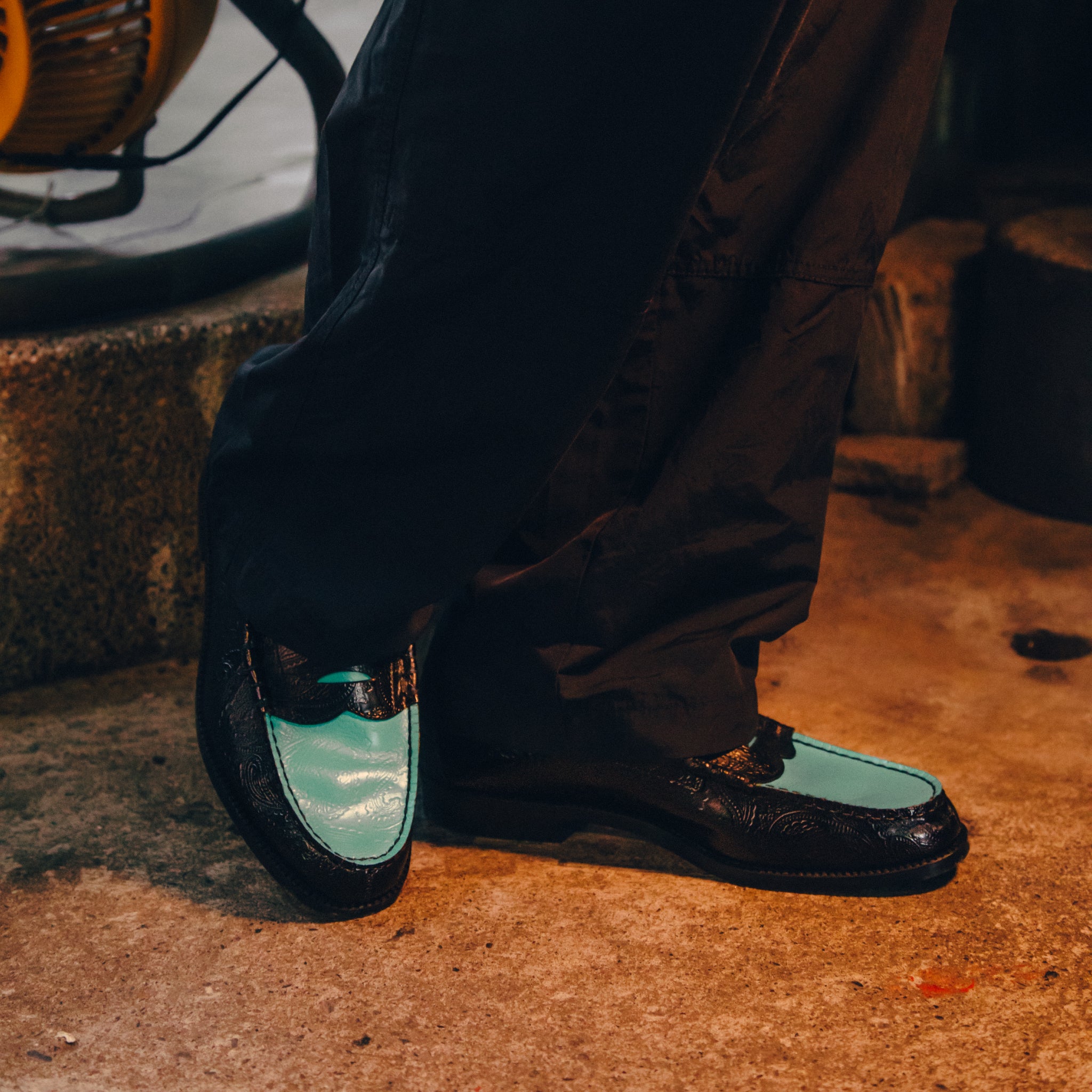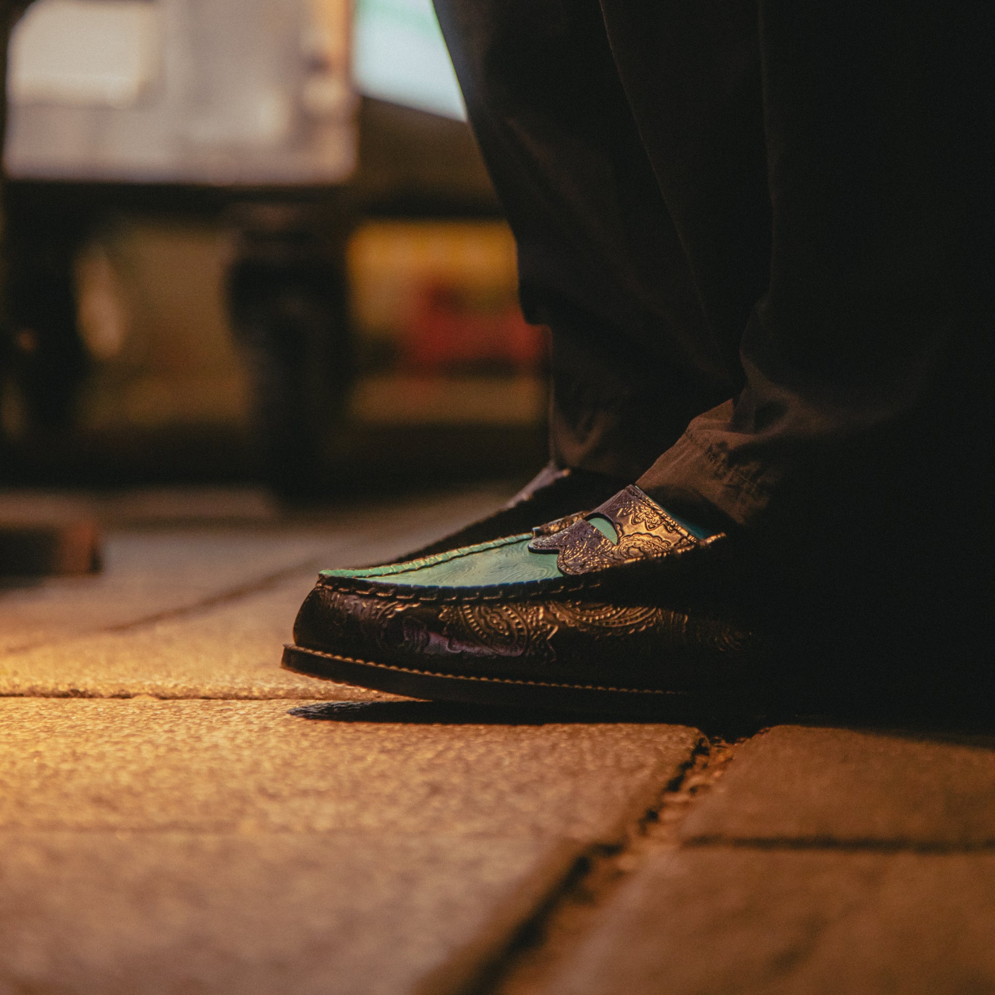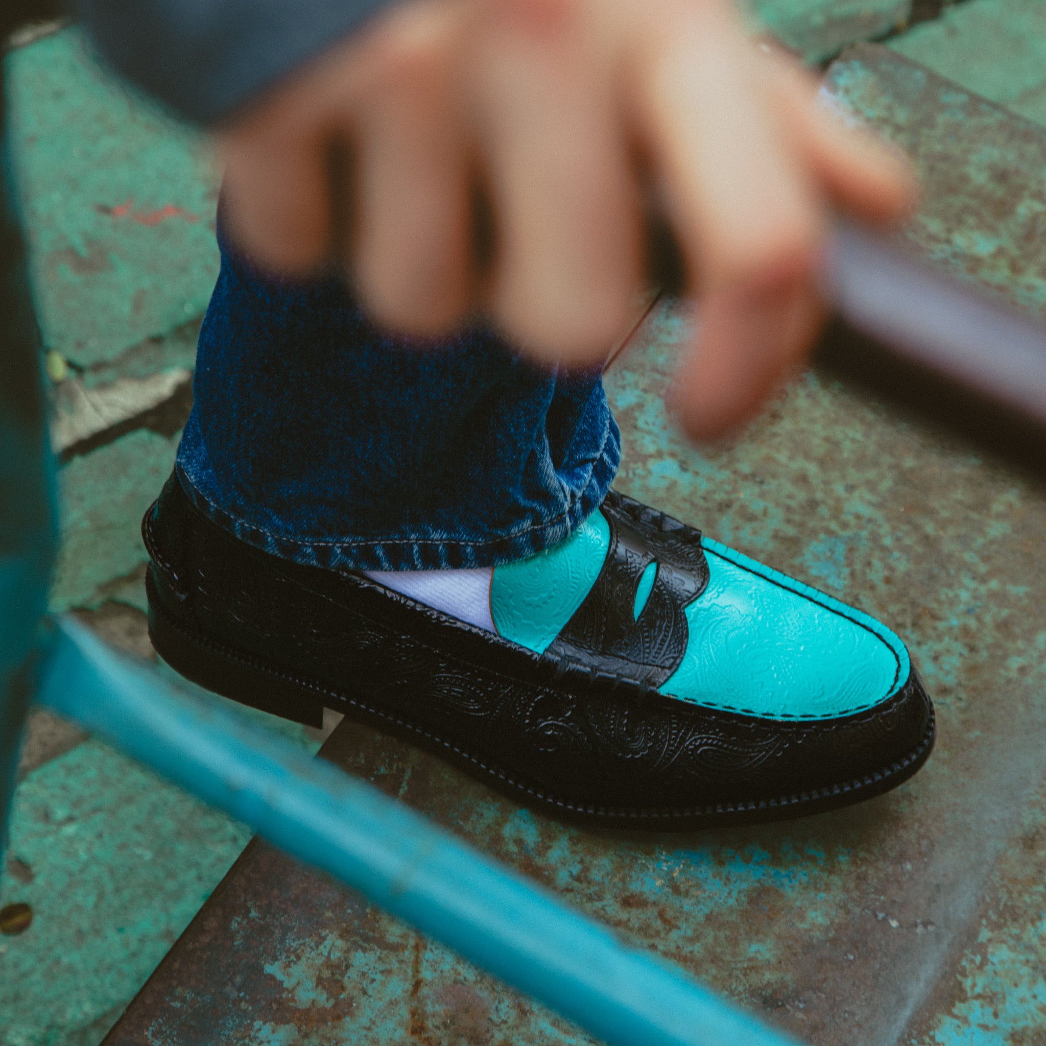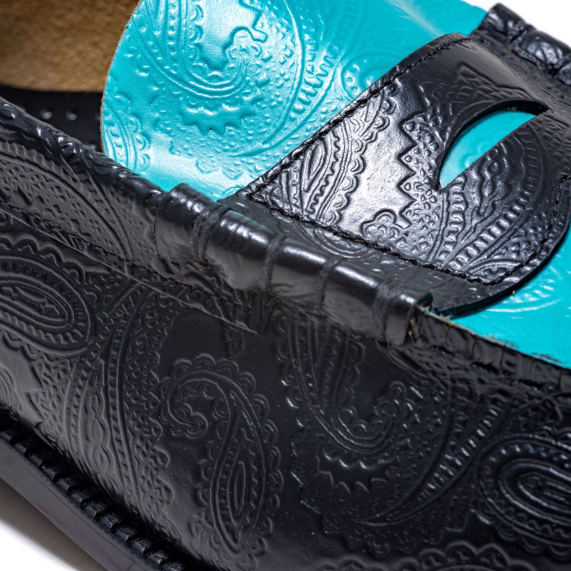 【3/14(土) 12:00~】MENS EMBOSSED LOAFERS / BLACK TURQUOISE BLUE PAISLEY