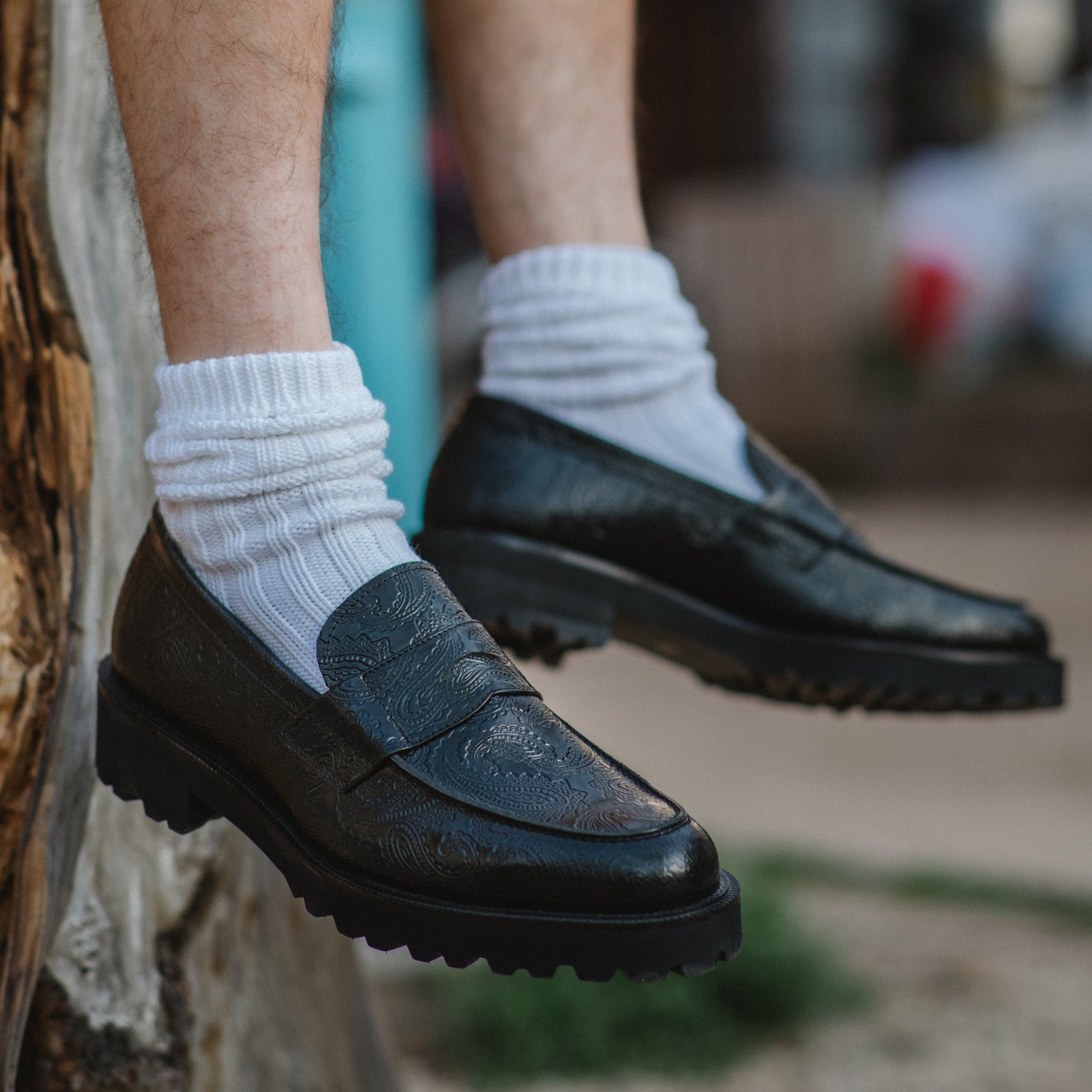 MENS NEW CLASSIC COIN LOAFERS / BLACK PAISLEY