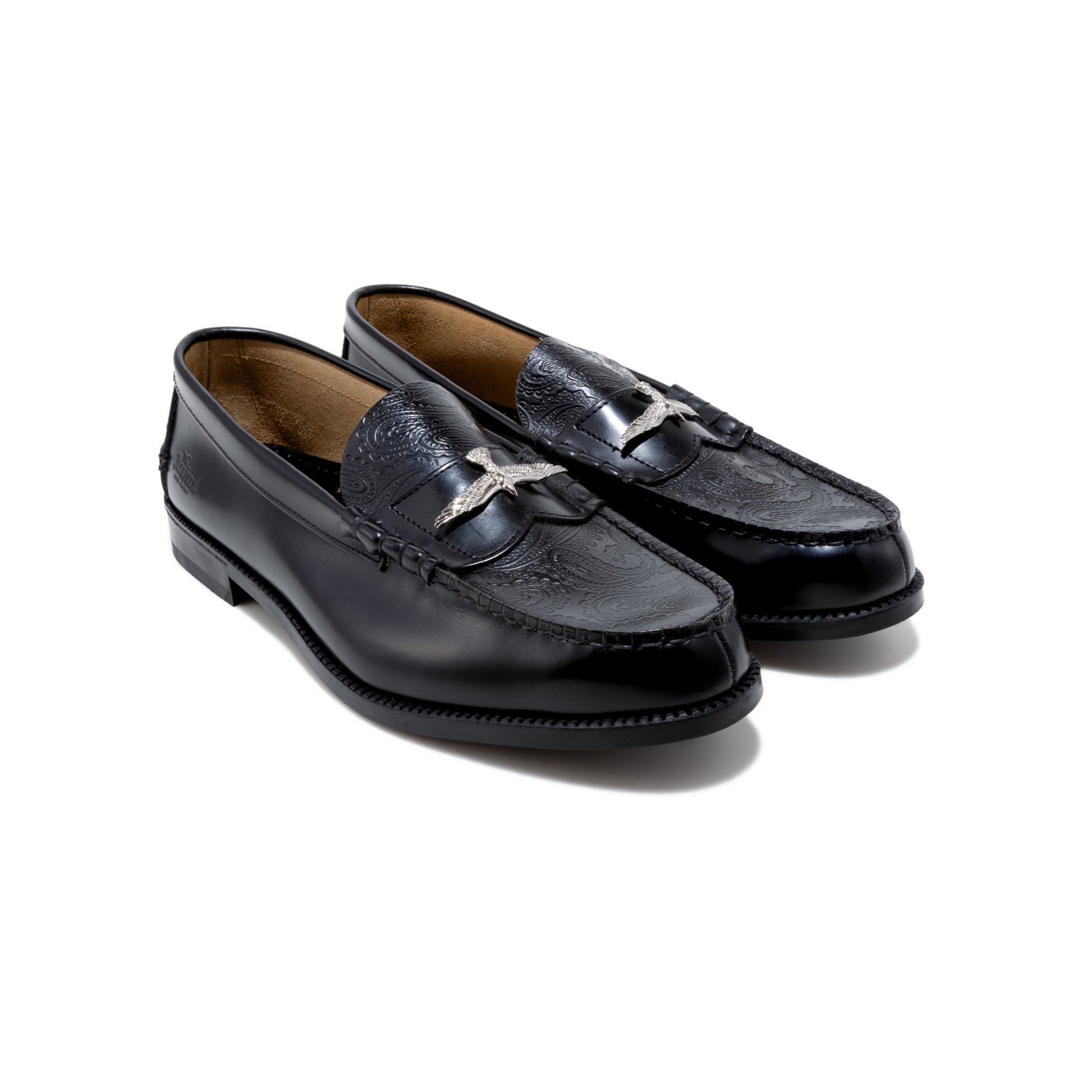 アッパー中央部分の切れ込みに1セントを挟み込むローファー独自の文化をケンフォードなりに解釈し、<IN-PUT-OUT>と共同製作したアクセサリー。自身で装着を行うだけで、シンプルなデザインにビットローファーのような装飾性をもたらすことが可能となります。