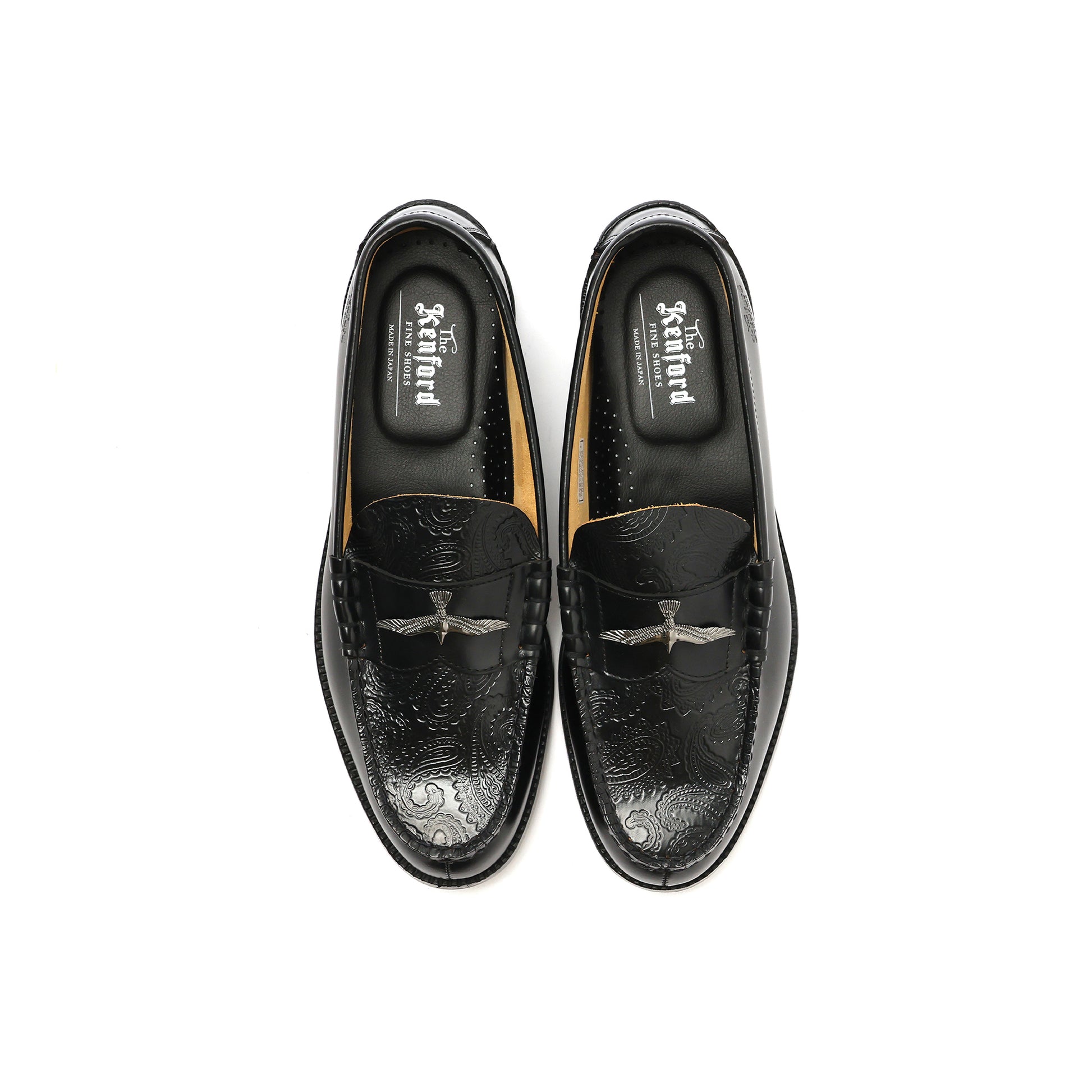 アッパー中央部分の切れ込みに1セントを挟み込むローファー独自の文化をケンフォードなりに解釈し、<IN-PUT-OUT>と共同製作したアクセサリー。