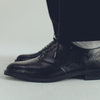 ブランドが誕生した1986年の1stコレクションにラインアップされていたアーカイブを活用し、ローファー同様に既存の日本製革靴にはない要素を加え発信をするヒモ靴の第一弾。踵下と土踏まずをサポートするクッションインソールを採用し、履き始めからストレスを感じにくい、日常使いに最適なスペックを備えています。ブランドの象徴であるペイズリー柄の型押しレザーを大胆に全面に配した、インパクトのある一足です。サドルシューズは、靴の中央部分に「馬の鞍(サドル)」のような形をした別の革が縫い付けられているデザインのことを言います。ゴルフ、ボーリング、テニスなどのスポーツで広く履かれた歴史のあるカジュアルなレザーシューズに、< The Kenford Fineshoes >らしい要素を加え発信します。