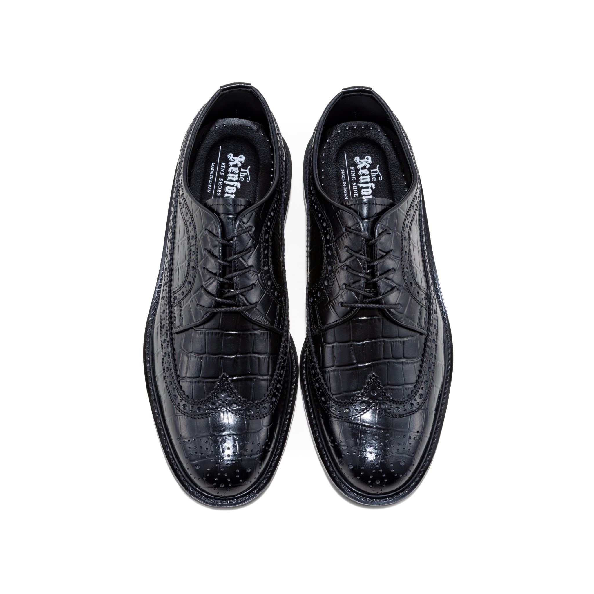 ブランドが誕生した1986年の1stコレクションにラインアップされていたアーカイブを活用し、ローファー同様に既存の日本製革靴にはない要素を加え発信をするヒモ靴の第一弾。踵下と土踏まずをサポートするクッションインソールを採用し、履き始めからストレスを感じにくい、日常使いに最適なスペックを備えています。クラシックローファーでも人気のクロコダイル型押しを追加します。ウイングチップは、つま先部分の革の切り替えがW字型になっており、このW字の切り替えが鳥の翼(wing)のように見えることから、その名前がついたと言われています。華やかで存在感のあるレザーシューズに、< The Kenford Fineshoes >らしい要素を加え発信します。