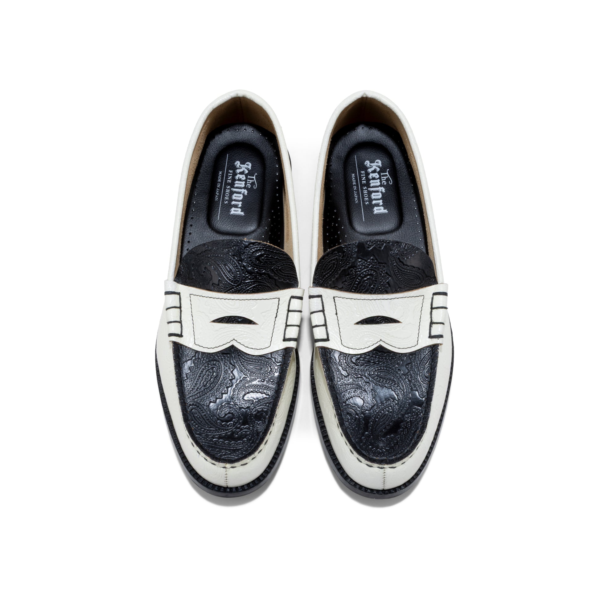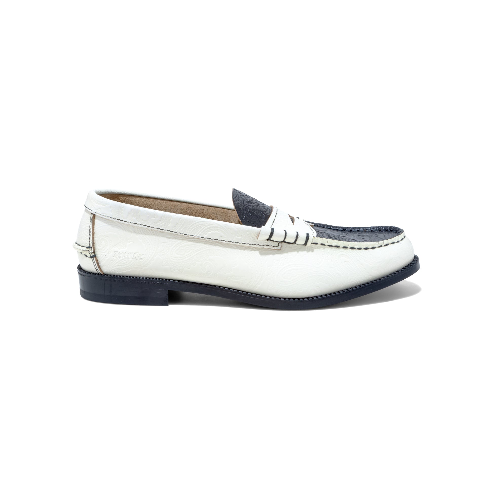 MENS EMBOSSED LOAFERS / WHITE BLACK PAISLEY