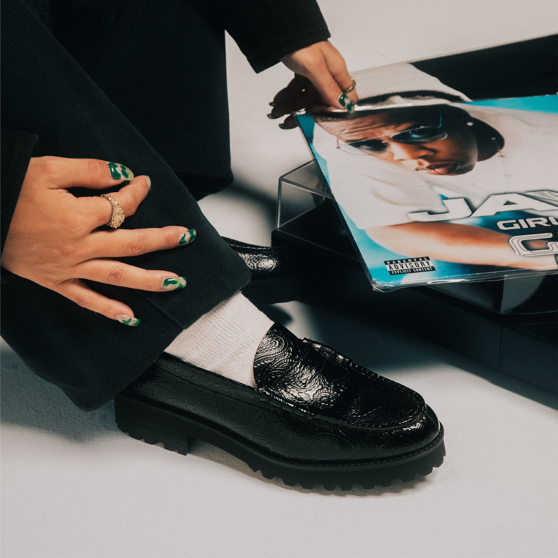 WOMENS PAISLEY TANK SOLE LOAFERS / BLACK PAISLEY